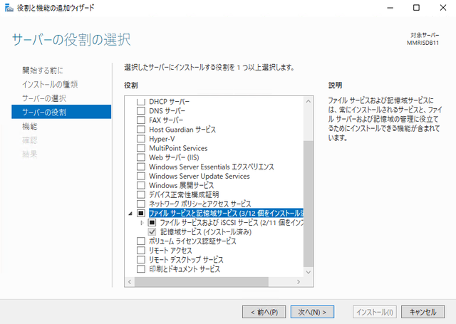 サーバーの役割 ⇒ ファイルサービスと記憶領域サービス