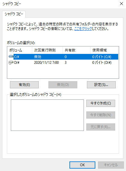 共有フォルダをバックアップを取ってくれます。またプロパティから復元できるのも気軽です。